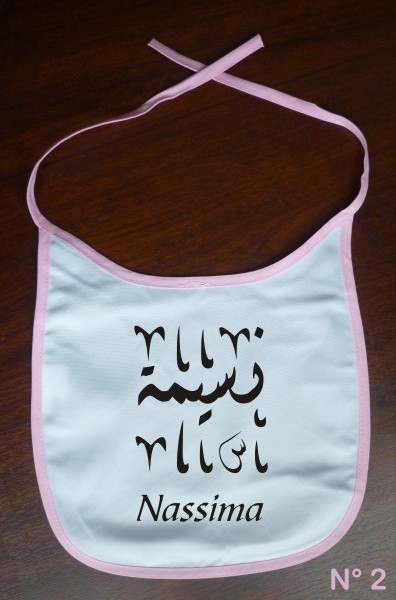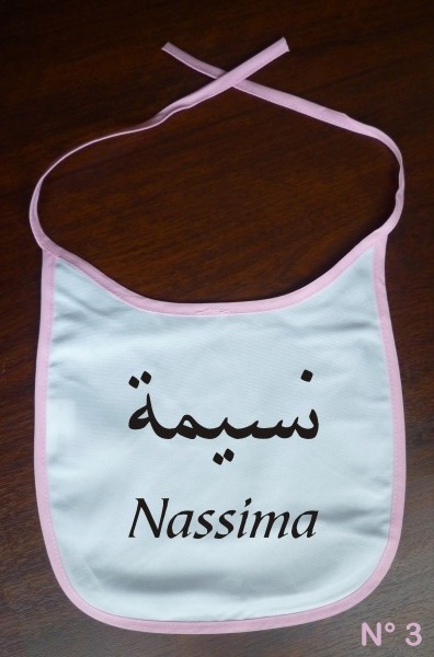 Bavoir personnalisé pour bébé avec prénom masculin écrit en arabe - REF. 14439 (8.00 €) |