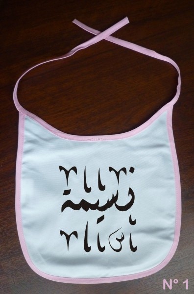 Une idée originale pour une naissance ou une 'aqiqa islamique que celle de ce bavoir personnalisé pour le petit bébé musulman.
