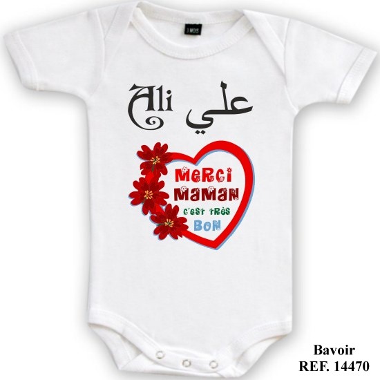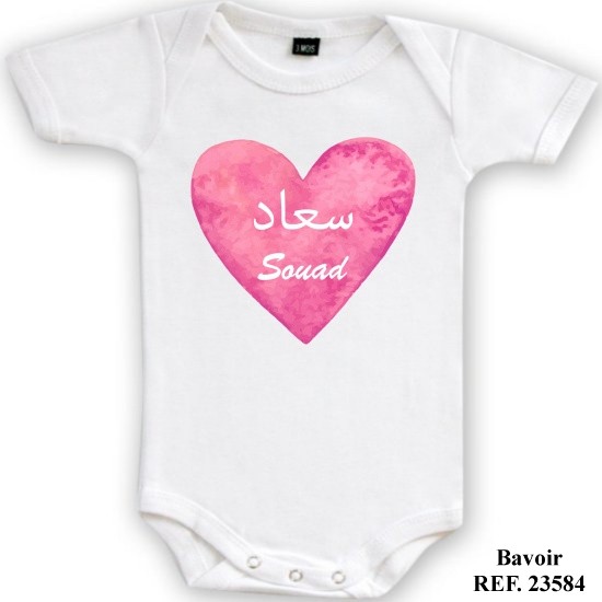 Body bébé à manches courtes avec calligraphie arabe personnalisée de son prénom - REF. 23315 (12.90 €)
