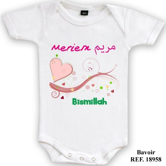 Body bebe musulman personnalisable avec illustration et prenom en francais/arabe personnalises (Body Islamique)