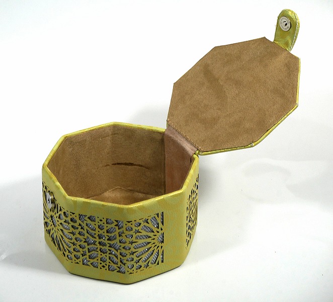 Boite de Rangement artisanale de forme octogonale en cuir avec des jolies motifs argentés - Couleur jaune Deco & Cadeau