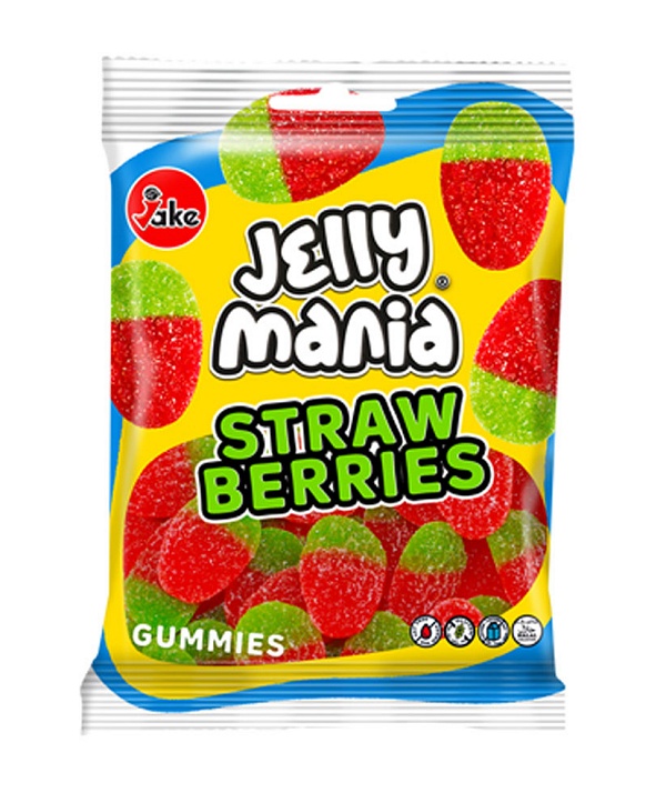Bonbon Confiseries Halal : Fraises sauvages sucrées acides (100 g) - Jelly Mania "Straw Berries" - REF. 5225 (1.50 €) - En Promotion à 1.20 €