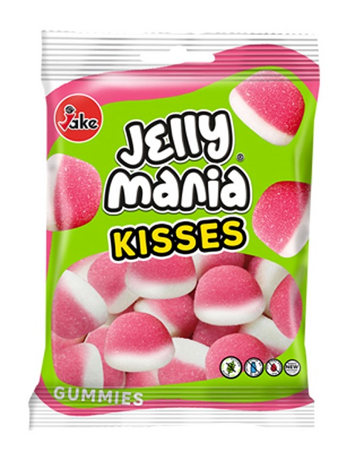 Bonbons Confiseries Halal : Bisous fraises sucrés (100gr) - Jelly Mania "Kisses" - REF. 12508 (1.50 €) - En Promotion à 0.99 €