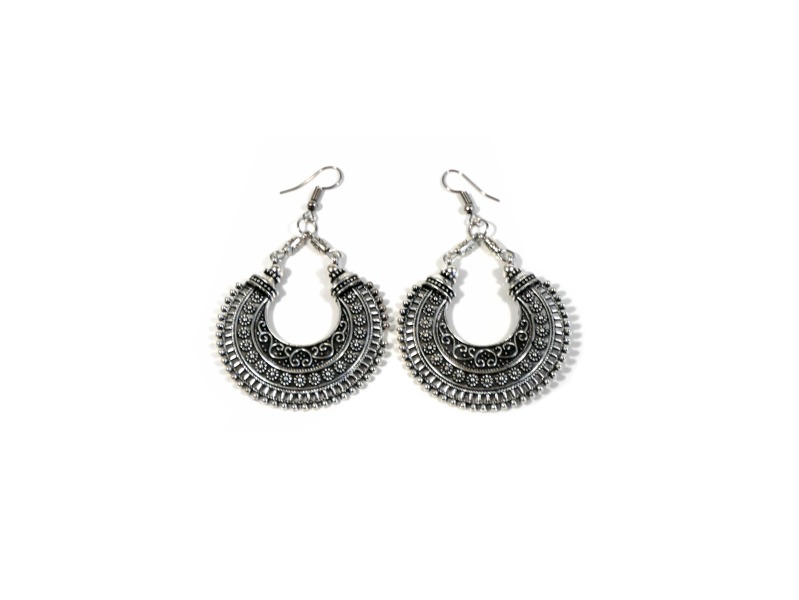 Boucles d'oreilles artisanal pendantes en métal argenté  Deco & Cadeau