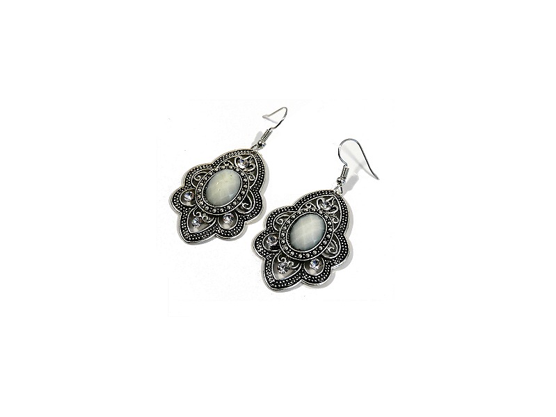 Boucles d'oreilles pendantes, style berbère, fabriquées en métal argenté - composition argent - délicatement ciselé, serties de pierres blanc.