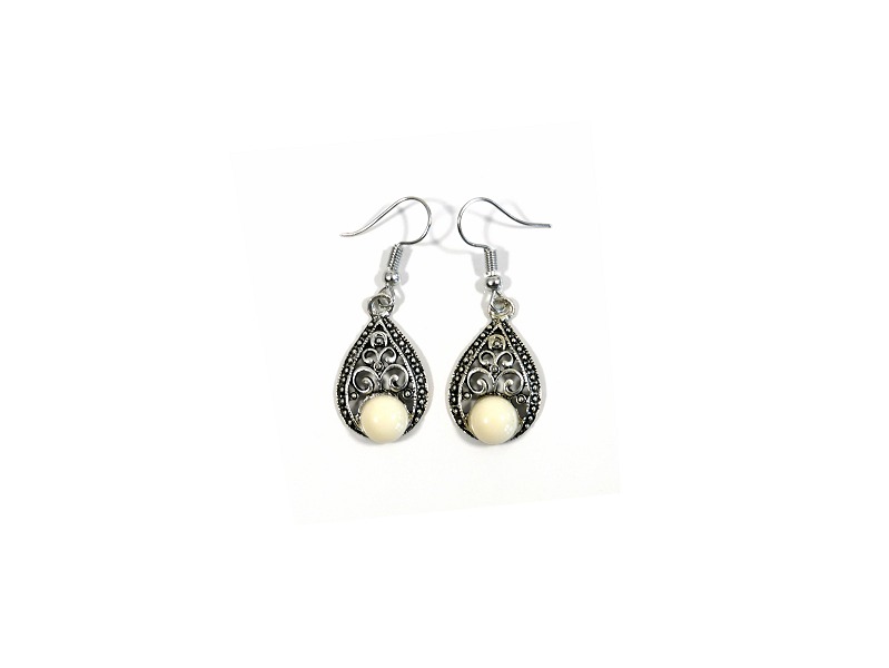 Boucles d'oreilles pendantes, style berbère, fabriquées en métal argenté - composition argent - délicatement ciselé, serties de pierres blanc.