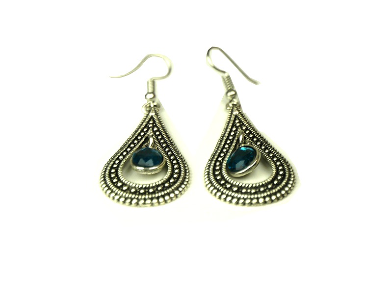 Boucles d'oreilles pendantes, style berbère, fabriquées en métal argenté - composition argent - délicatement ciselé, serties de pierres bleu clair.
