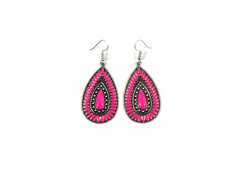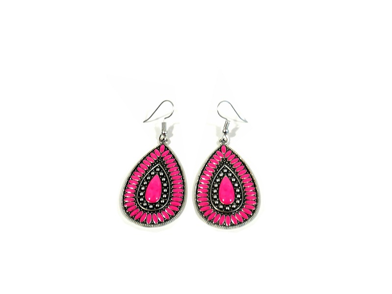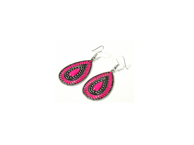 Boucles d'oreilles pendantes, style berbère, fabriquées en métal argenté - composition argent - délicatement ciselé, serties de pierres rose.