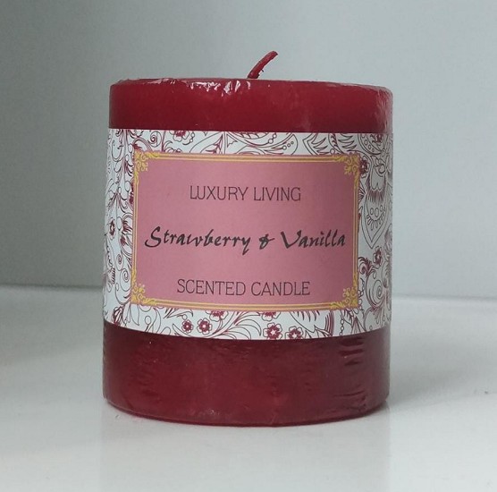 Bougie agréablement parfumée de qualité supérieure - Parfum Fraise et vanille - REF. 38537 (3.50 €)