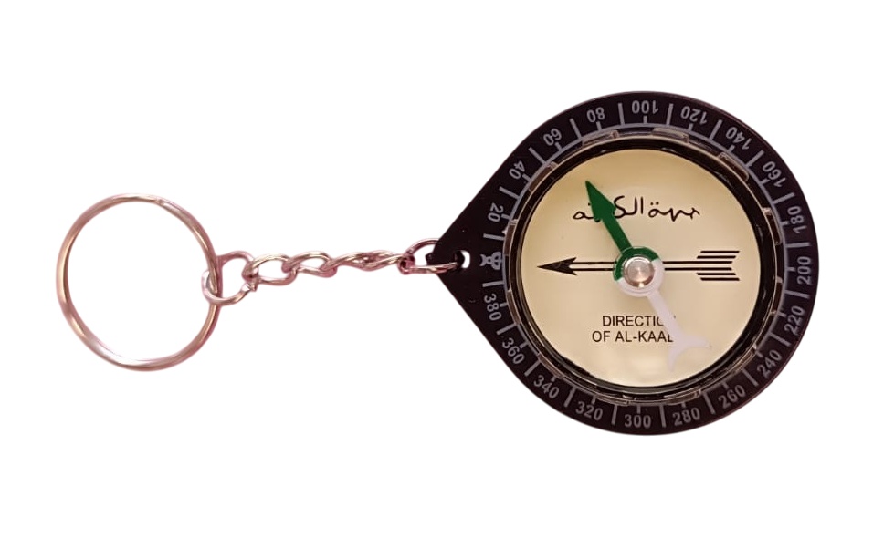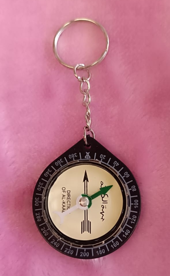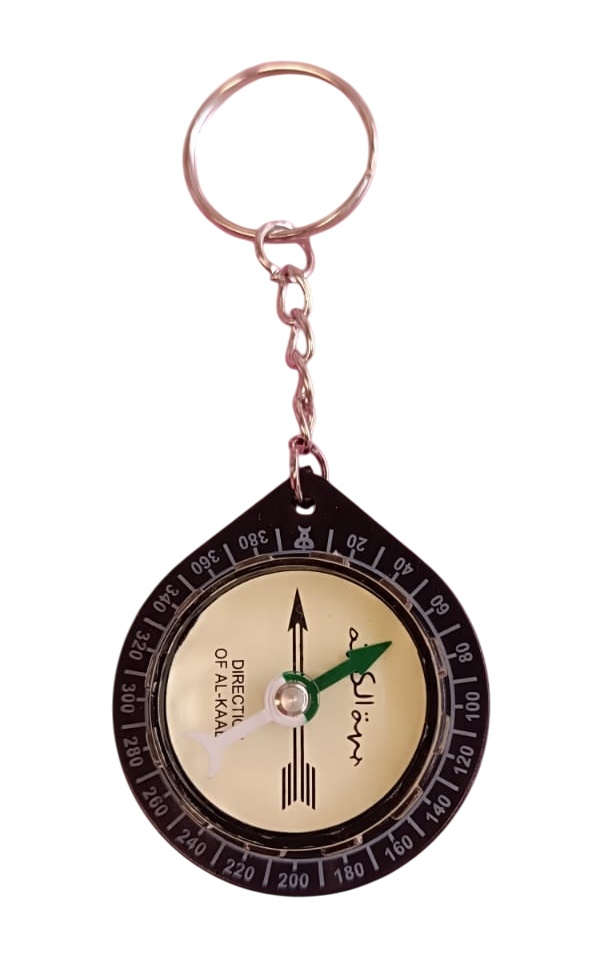 Boussole porte-cles indiquant la direction de la Kaaba a La Mecque (Qibla pour la priere musulmane) avec une haute precision