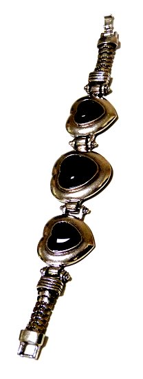 Bracelet Cuff ajustable en métal argenté ciselé orné de pierre noire sous forme de coeur - REF. 19987 (15.00 €)