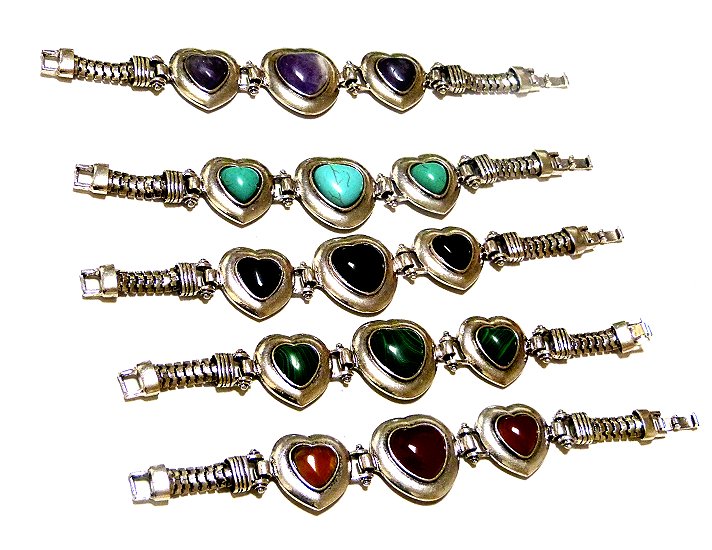 Bracelet artisanal marocain avec des pierres sous forme de cœur, exclusivement pour femmes.