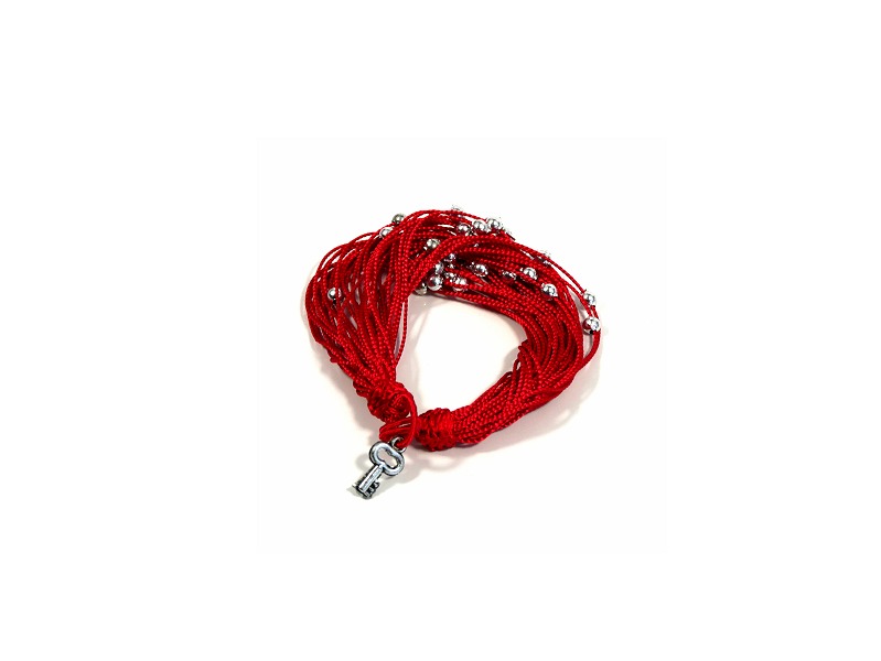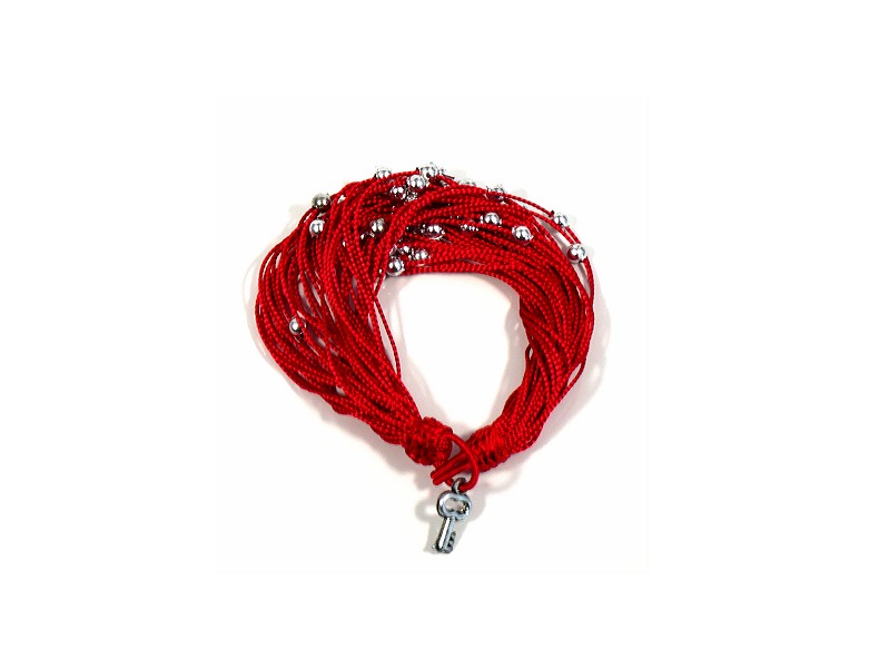 Bracelet artisanal en sabra de couleurs rouge avec pendentif cle