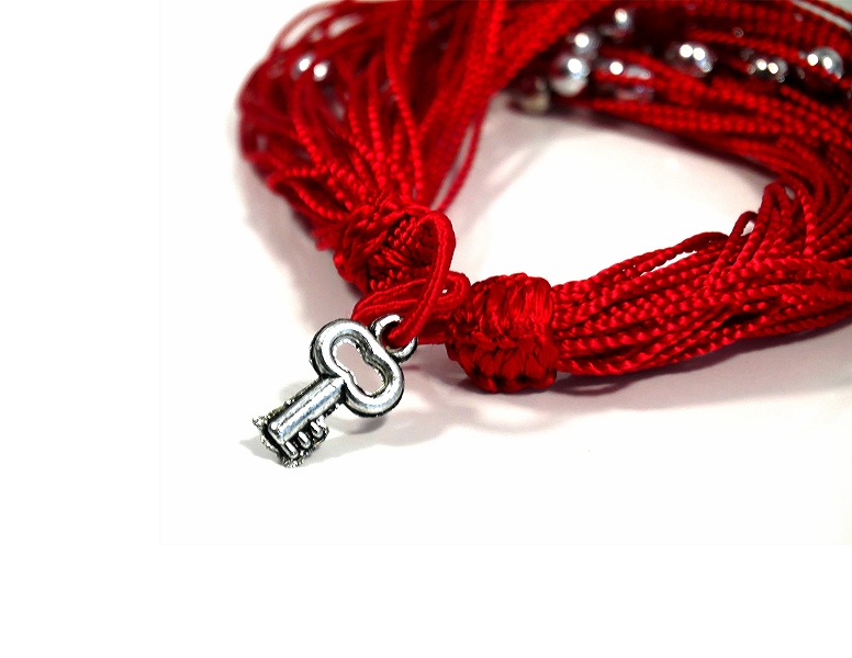 Bracelet artisanal en sabra de couleurs rouge avec pendentif clé Deco & Cadeau