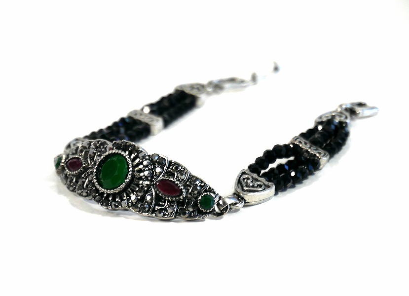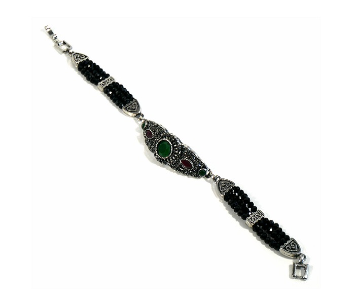 Bracelet artisanal pour femme avec jolies pierres en couleur noir et vert Vetement & Accessoire