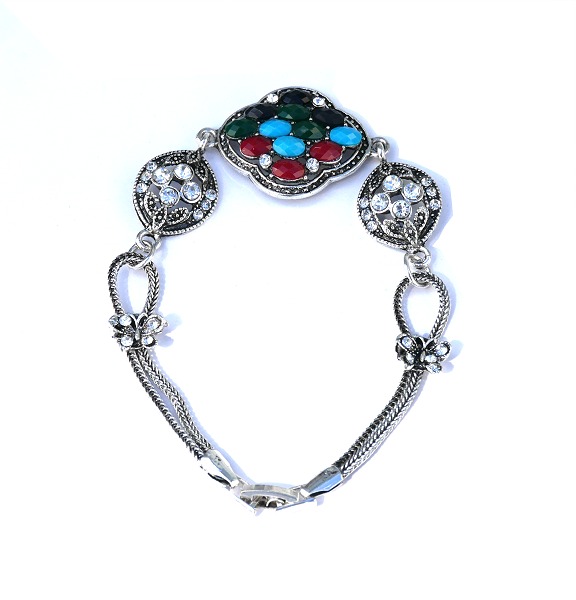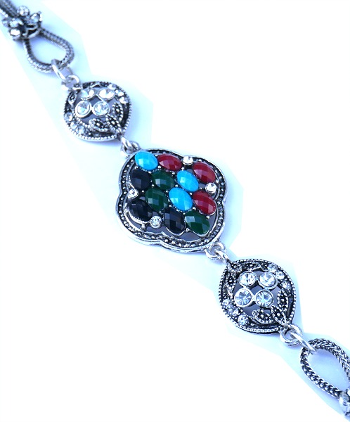 Bracelet artisanal marocain avec des pierres sous en couleur multi couleurs, exclusivement pour femmes.
