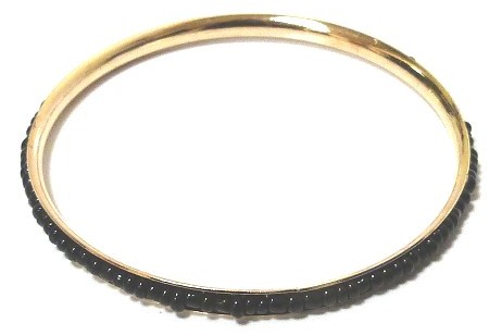 Bracelet fantaisie femme en métal doré garni d'une bande de perles ovales de couleur noire - REF. 15325 (2.00 €)