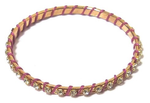 Bracelet fantaisie femme en métal doré orné de pierres cristallines et enroulé de fil brillant mauve - REF. 15329 (2.00 €)