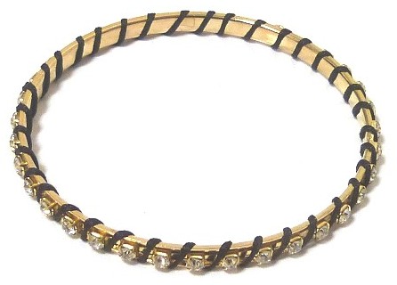 Bracelet fantaisie femme en métal doré orné de pierres cristallines et enroulé de fil brillant noir - REF. 15328 (2.00 €)