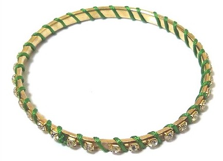 Bracelet fantaisie femme en métal doré orné de pierres cristallines et enroulé de fil brillant vert - REF. 15331 (2.00 €)