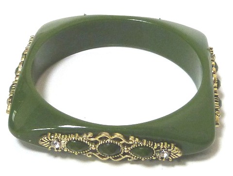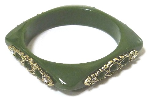 Bracelet fantaisie pour femmes, vert, en plastique, décoré de jolis ornements dorés et sertis de perles...