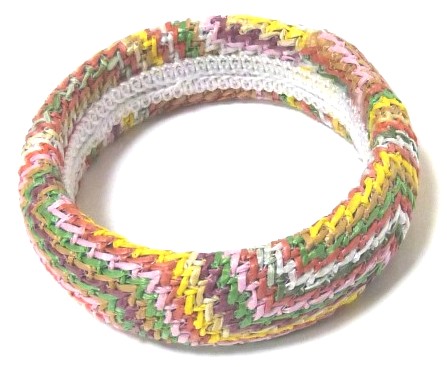 Bracelet fantaisie femme fin semi rigide d'épaisseur moyenne en fil de coton multicouleurs - REF. 15421 (2.90 €)