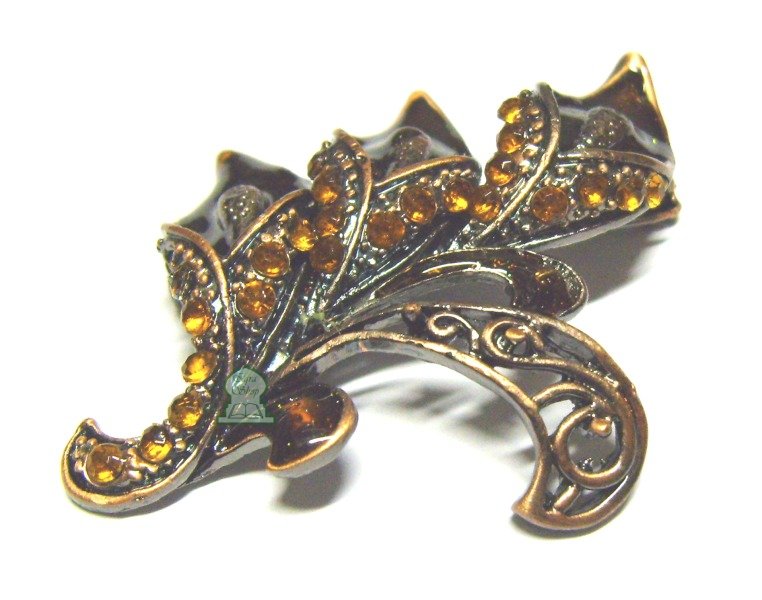 Broche cuivrée en forme de "Arum" avec perles oranges pour Hijab.