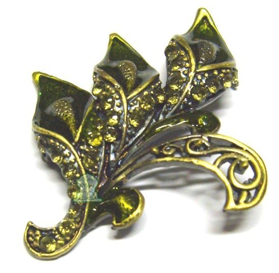 Broche "bouquet de fleurs vertes" dorée pour Hijab - REF. 6262 (4.90 €)