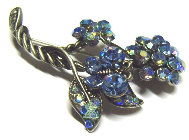 Broche "bouquet de fleurs bleues" argentée pour Hijab Divers