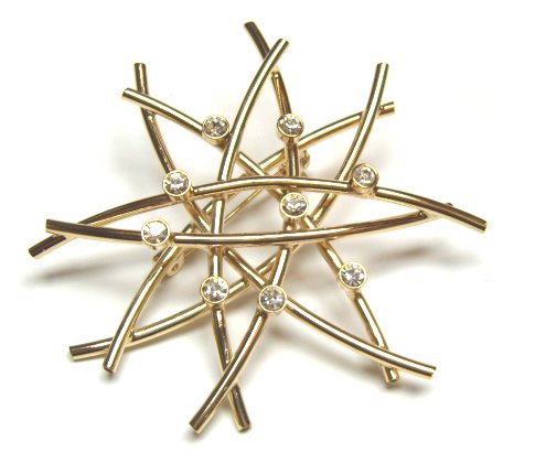 Broche doree "etoile" avec diamants
