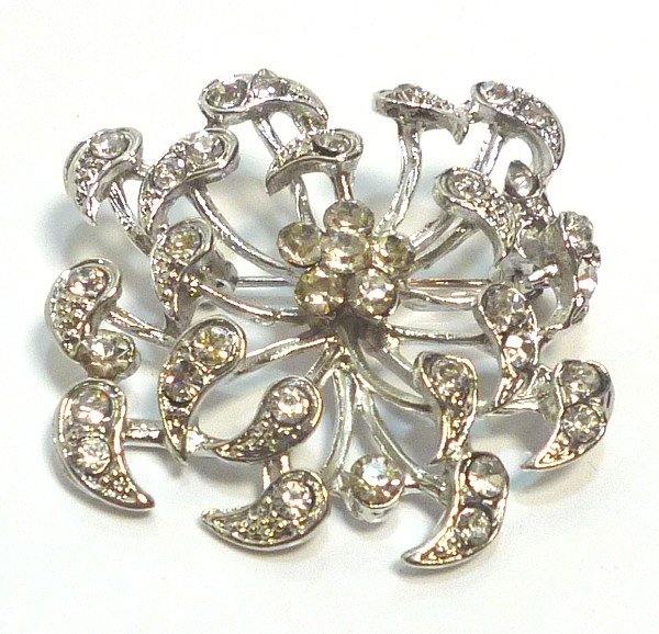 Broche métallique argentée sous forme de fleur ouverte avec diamants blancs - REF. 13286 (3.50 €) - En Promotion à 1.95 €