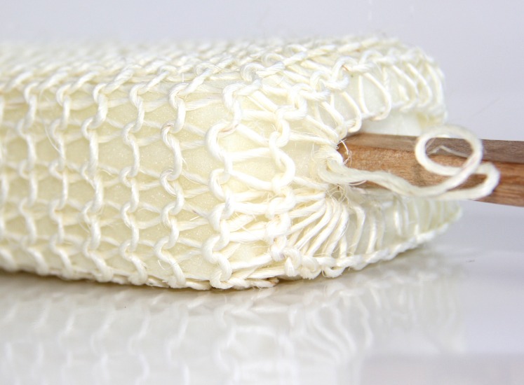 Brosse de bain (luffa) pour massage avec manche en bois - REF. 24710 (4.90 €) - En Promotion à 3.20 €