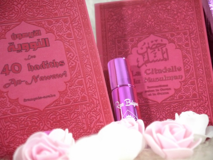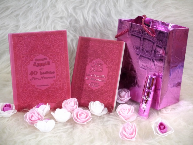 Cadeau pas cher pour femme musulmane de couleur rose avec livres et Parfum (Coffrets Muslim pour la fete de l'Aid, etc.)