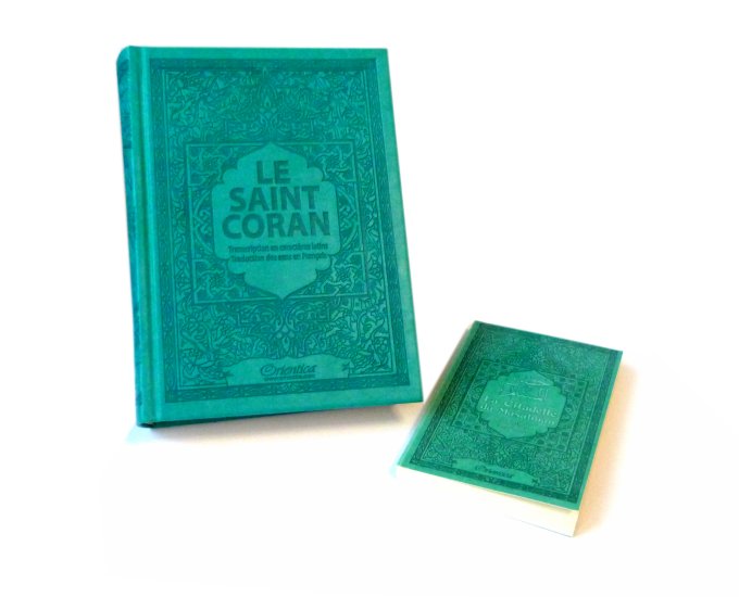 Cadeau pour musulman et musulmane : Le Saint Coran et la Citadelle du Musulman (français/arabe/phonétique) - Couleur vert-bleu - REF. 23602 (28.00 €) |