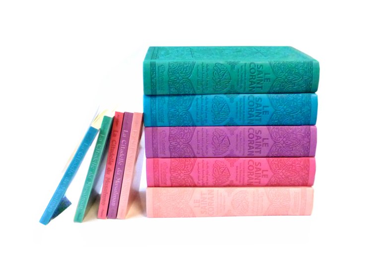 Très beaux Corans avec des couvertures de couleur de type Simili Cuir doux au toucher. Idéal pour offrir. |