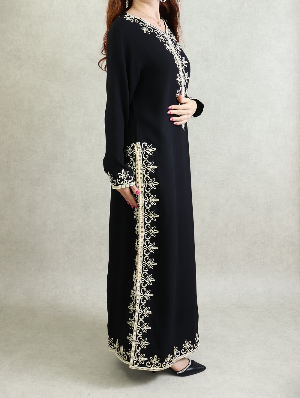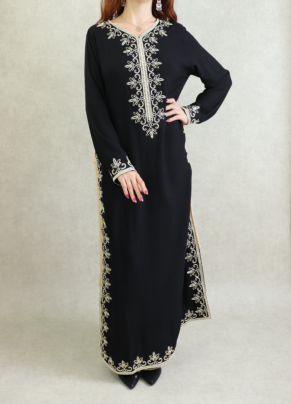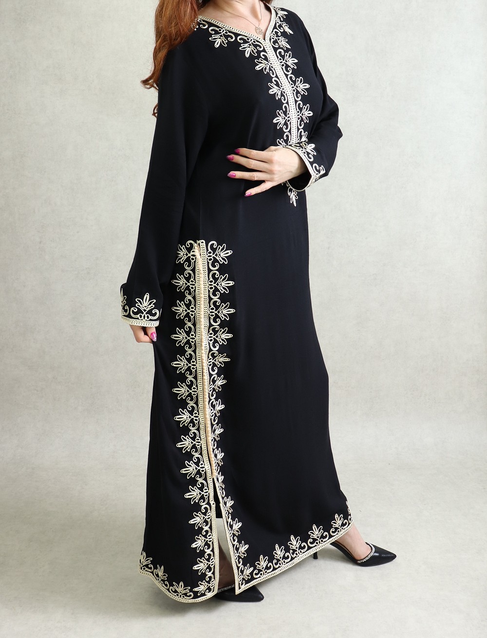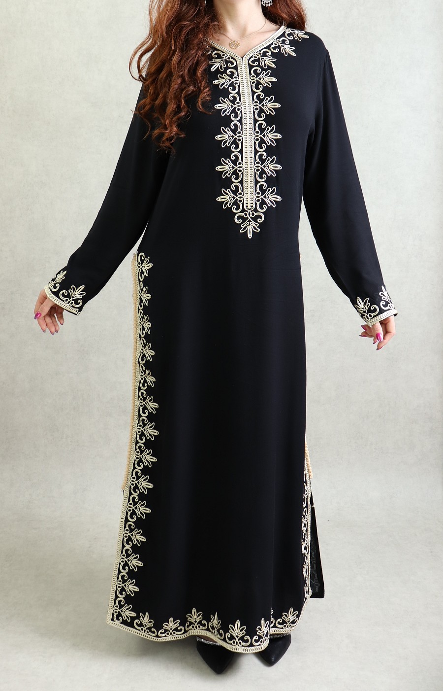Vêtue de ce sublime vêtement typique de la garde-robe orientale, vous serez la plus élégante pour une soirée ou pour un simple moment passé entre amis. Associée aux reflets lumineux des ornements feront de cette robe caftan une pièce maîtresse de votre style. Vous ne passerez pas inaperçue !