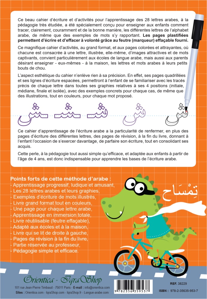 Livre avec feutre effaçable "J'écris mes formes, les animaux, les couleurs" pour l'apprentissage de l'arabe - انا اكتب الاشكال والحيوانات والالوان - عربي - REF. 15642 (12.00 €)