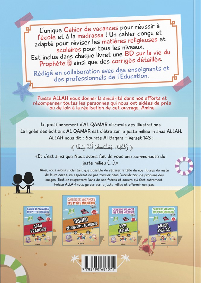 L'unique cahier de vacances pour réussir à l’école et à la madrassa ! Un cahier conçu et adapté pour réviser les matières religieuses et scolaires pour tous les niveaux. Est inclus dans chaque livret une BD sur la vie du Prophète (saws) ainsi que des corrigés détaillés. Rédigé en collaboration avec des enseignants et des professionnels de l'Éducation.