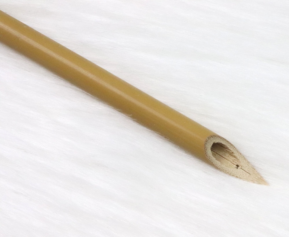 Le calame est taillé dans une variété de bambou jaune, dur et dense. Son tracé net et précis se conjugue avec une excellente résistance à l’usure.