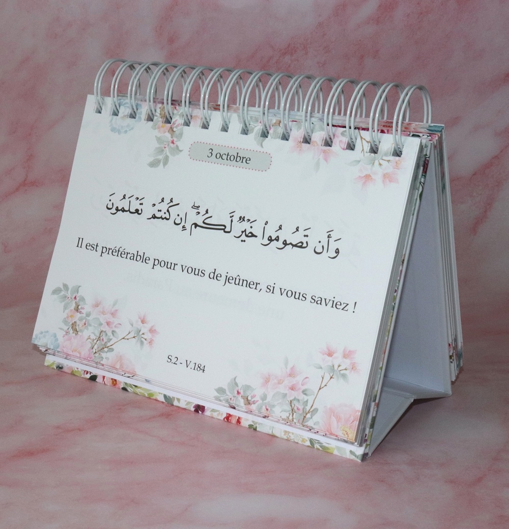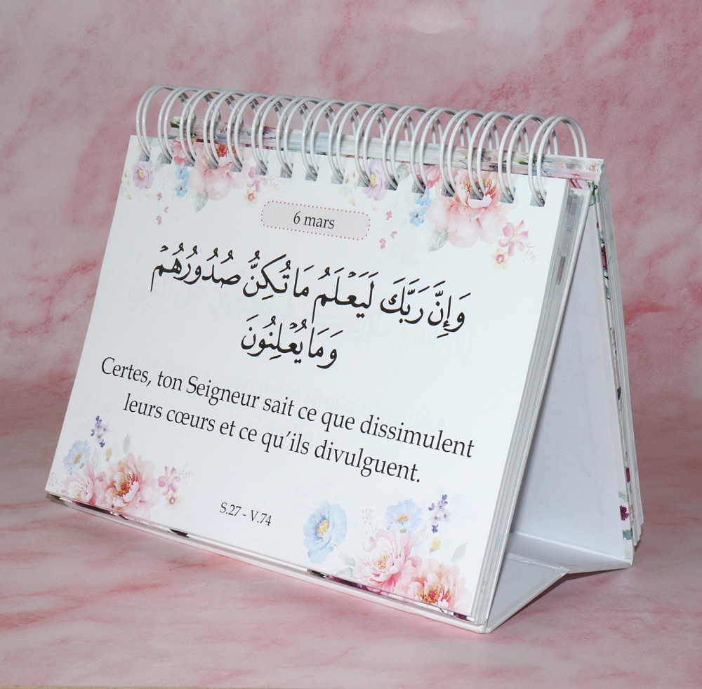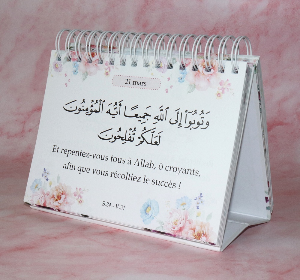 Inspiré de la Parole incréée, perpétuelle, incorruptible et explicite d’Allah, ce calendrier vous assure une sélection de versets coraniques poignants à lire et à méditer et vous permettra d’approfondir vos connaissances religieuses et de parfaire votre pratique cultuelle.