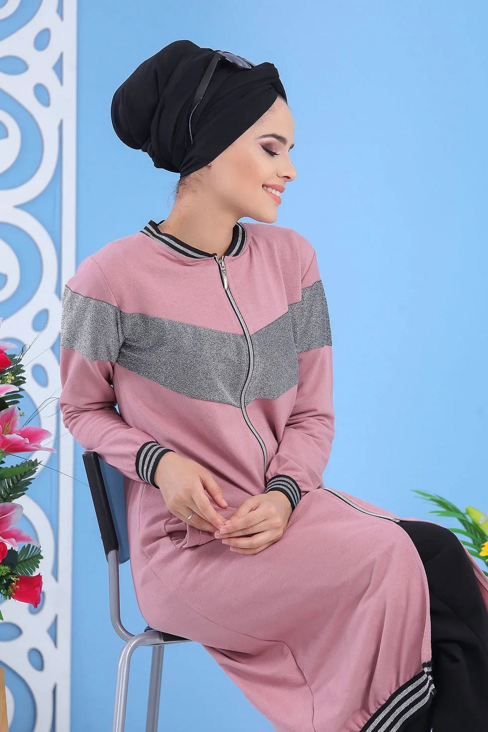 Cardigan long à capuche - Robe zippée style sport pour femme musulmane - Couleur Gris anthracite - REF. 32196 (25.00 €) - En Promotion à 19.90 €