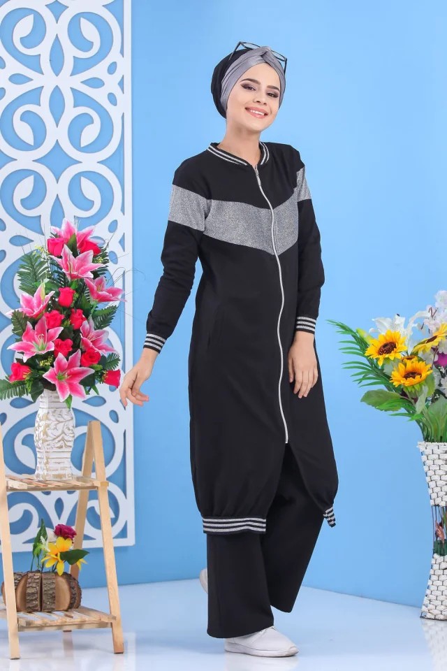 Survêtement femme (Vêtement Sport Hijab en ligne ) - Couleur noir et beige - REF. 35172 (28.00 €)