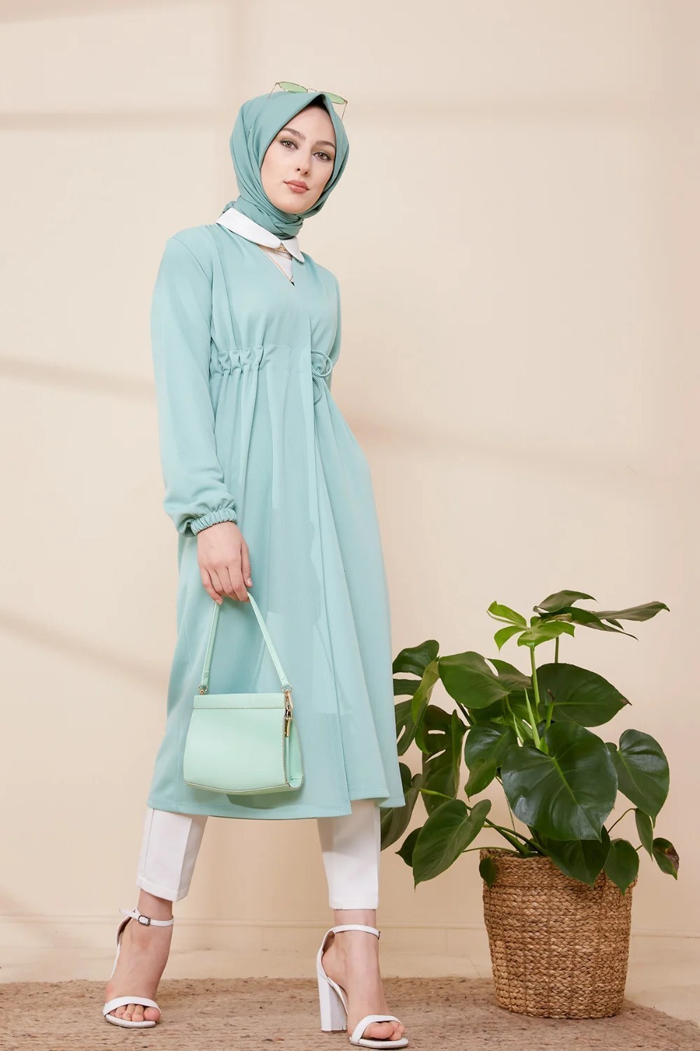 Veste zippée ample et légère mi longue (Vetement mastour pour femme voilée) - Couleur menthe - REF. 33157 (26.00 €)