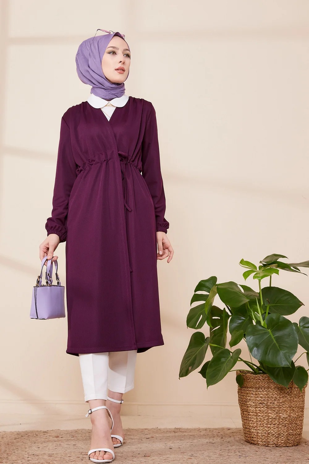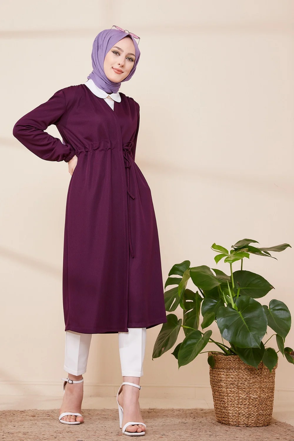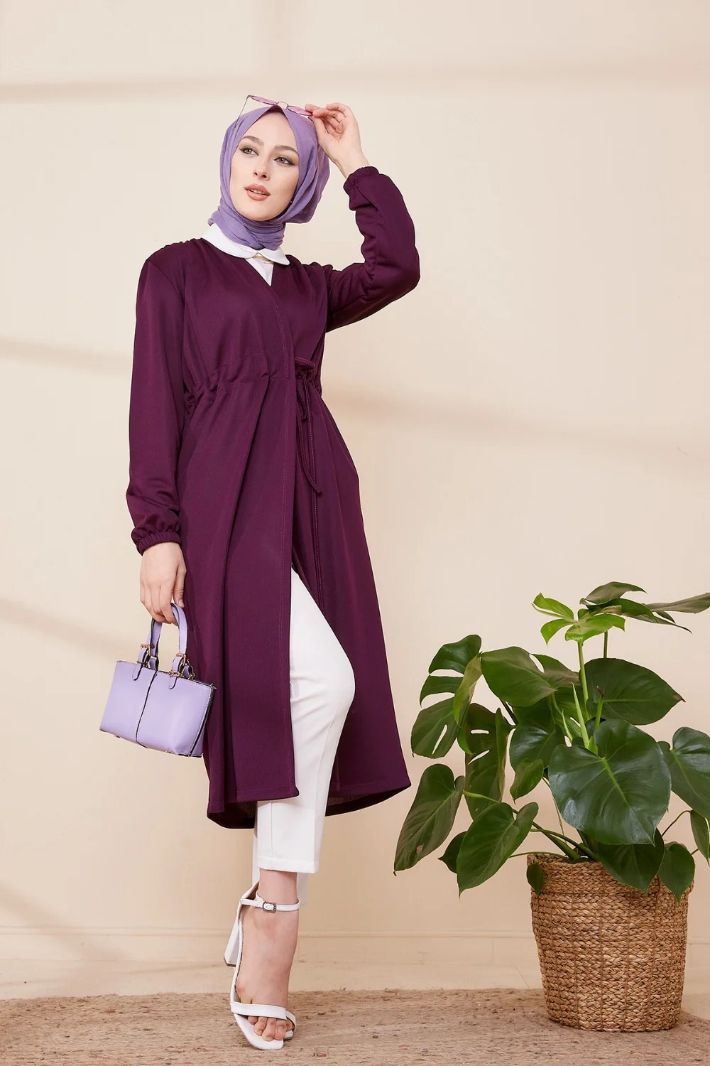 Cardigan a lacets pour femme (Boutique musulmane pas cher hijab en region parisienne) - Couleur violet