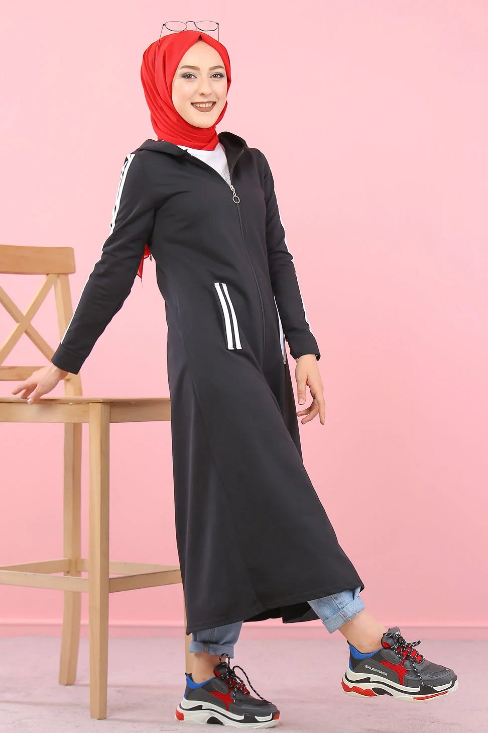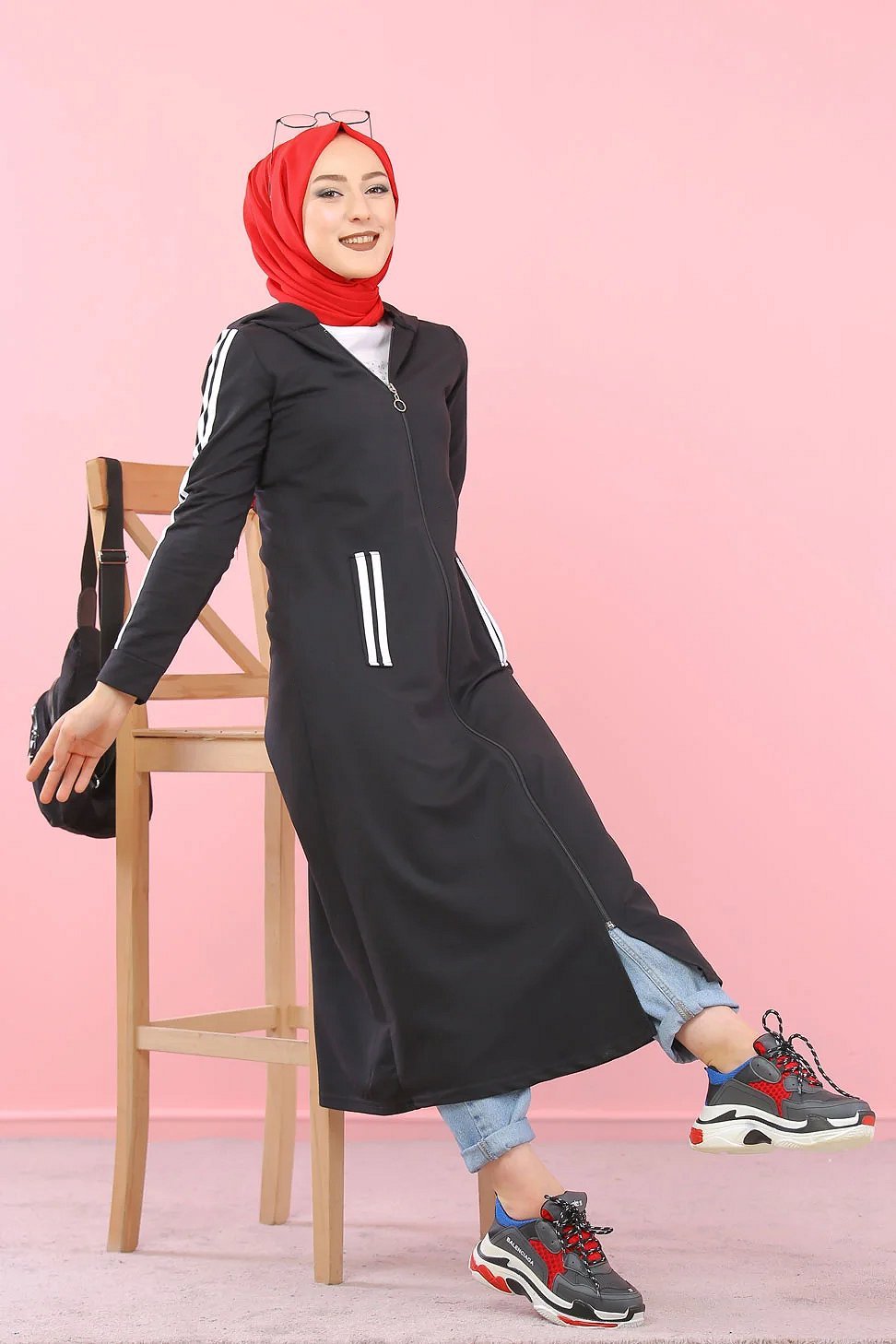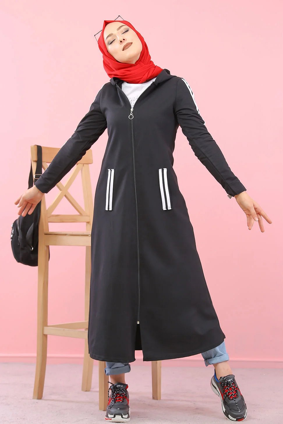 Veste moderne style décontracté avec fermeture zip (Vetement femme voilée) - Couleur noir - REF. 32955 (24.90 €) - En Promotion à 19.90 €