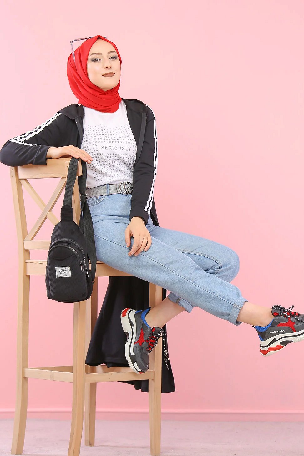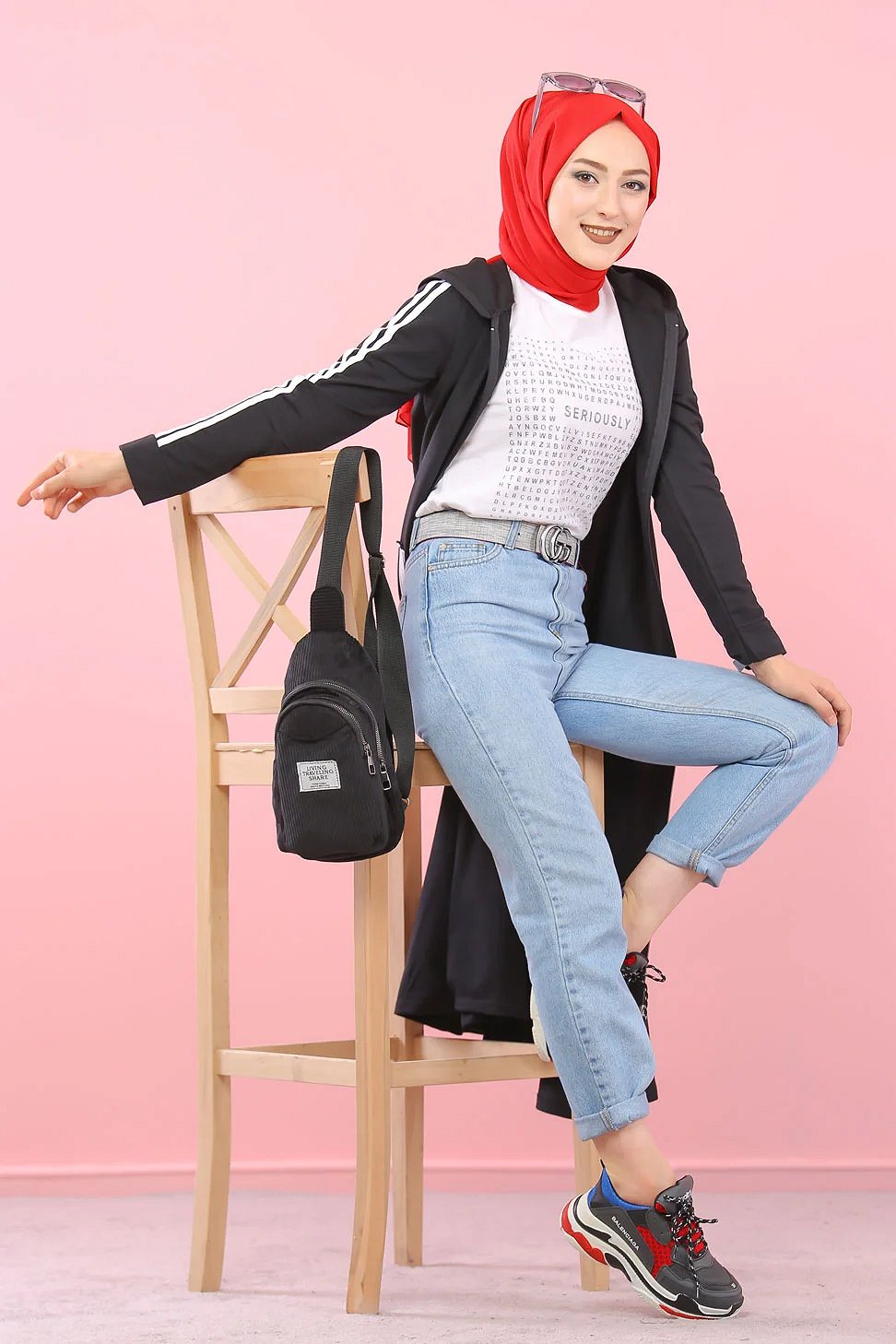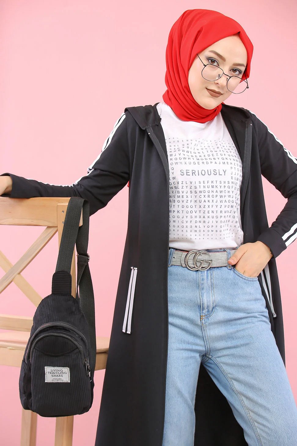Veste moderne style décontracté avec fermeture zip (Vetement femme voilée) - Couleur noir - REF. 32955 (24.90 €) - En Promotion à 19.90 €