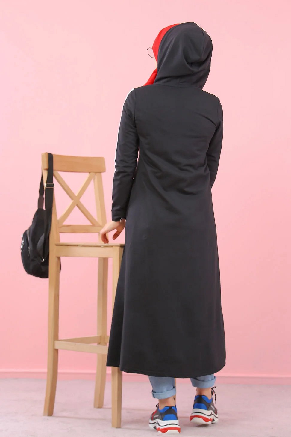 Cardigan long à capuche - Robe zippée style sportswear pour femme voilée - Couleur Noir Vetement & Accessoire