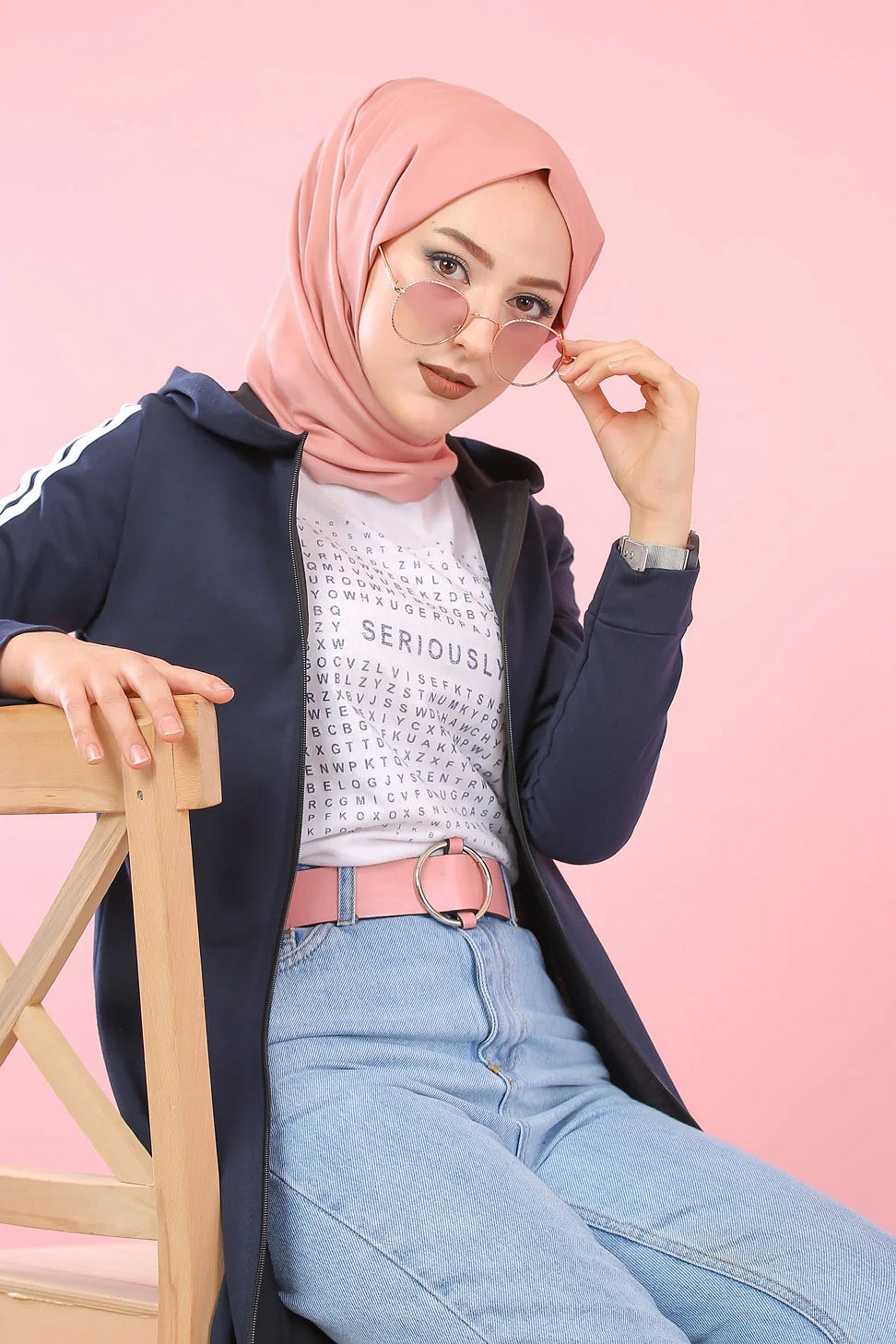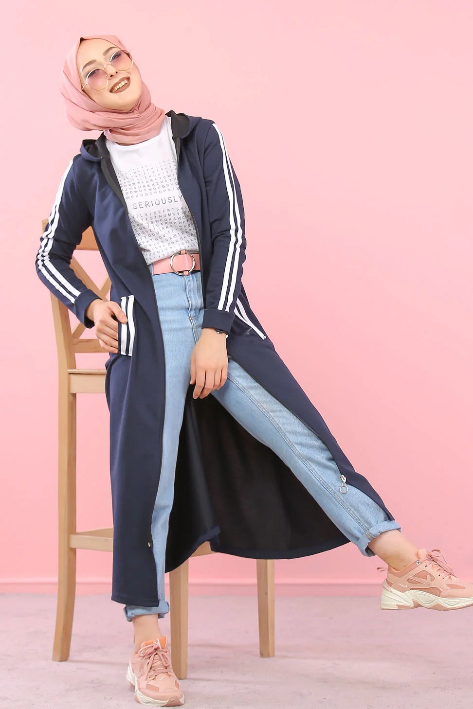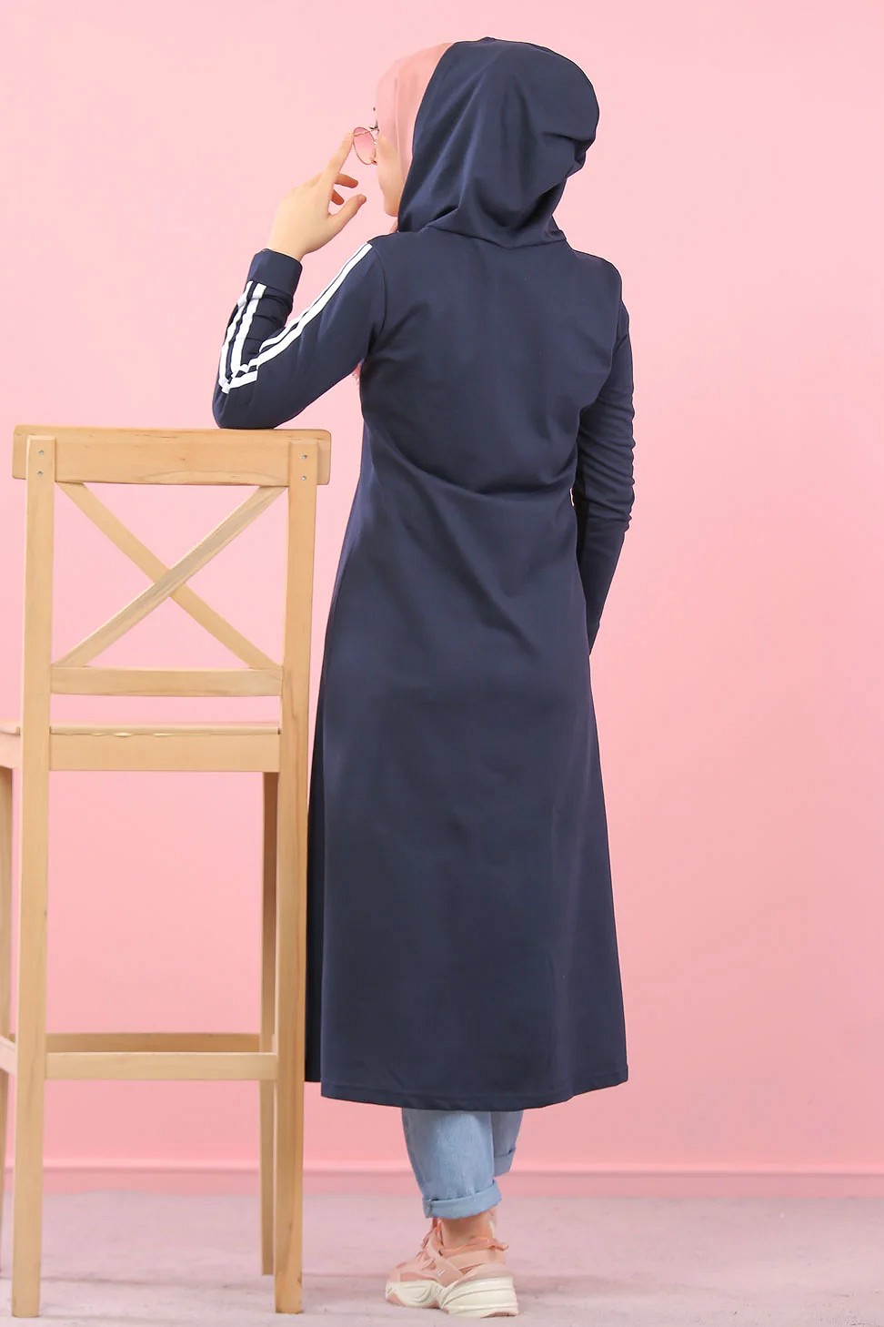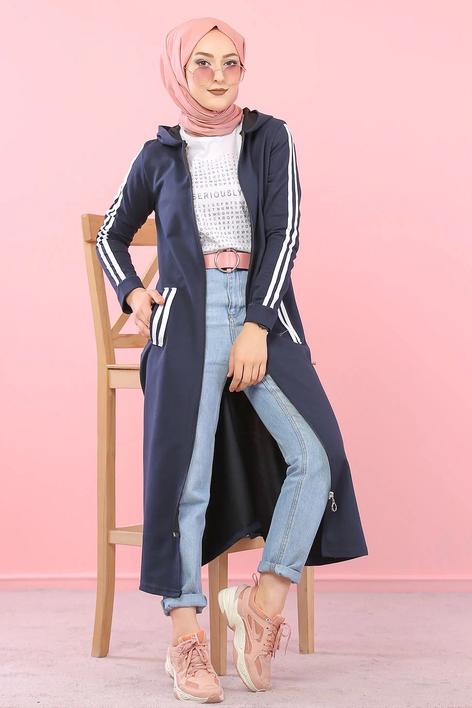 Cardigan long à capuche style décontracté et sportswear - Robe zippée pour femme voilée - Couleur Bleu marine Vetement & Accessoire