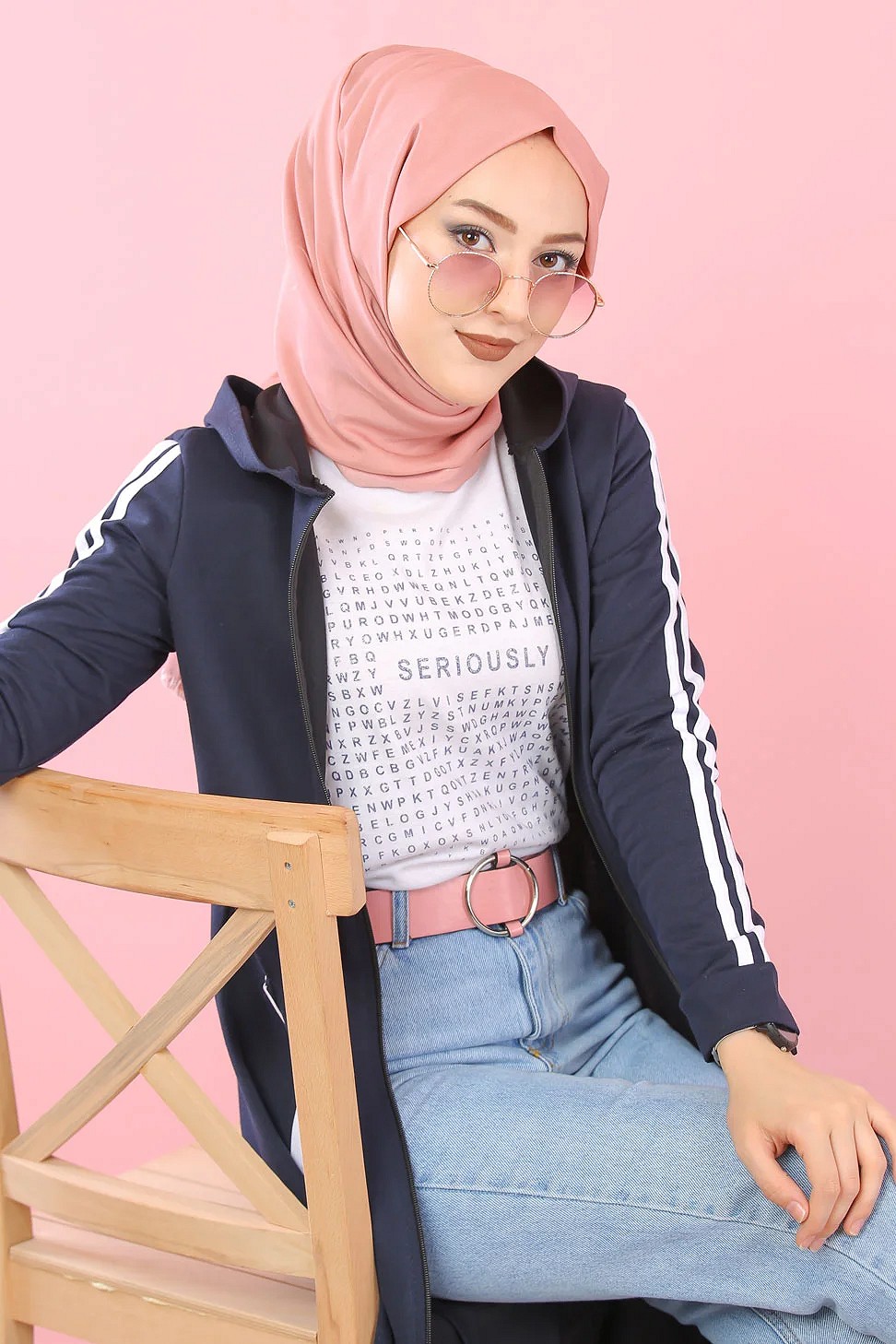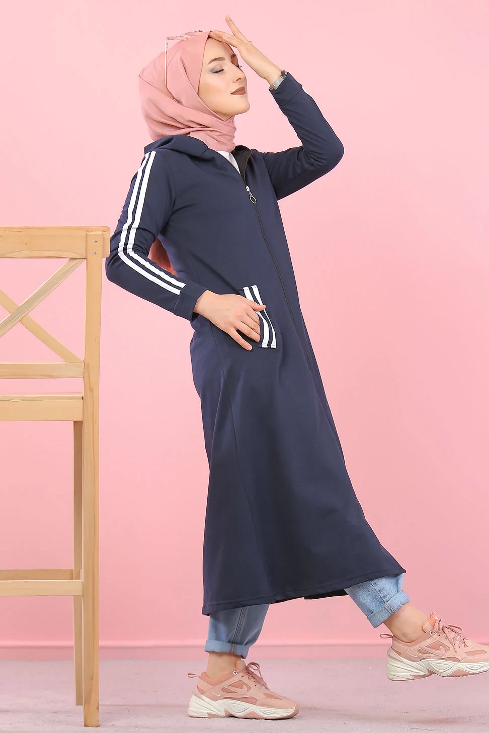 Ensemble survêtement avec sweat-shirt et jogger (Vêtement sport femme voilée) - Couleur Bleu marine - REF. 32895 (25.00 €) - En Promotion à 19.90 €