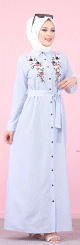 Robe chemise longue à rayures bleues avec ceinture (Vetement hijab femme musulmane) - REF. 32968 (29.90 €)